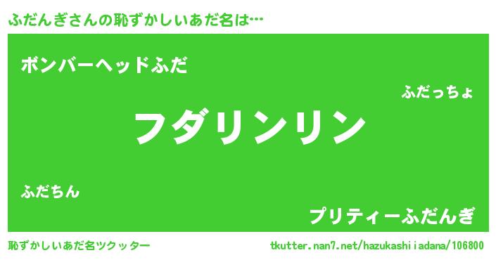 | 欧米人風あだ名 | 『ウサインふだんぎ』『ダニエルふだんぎ』 |