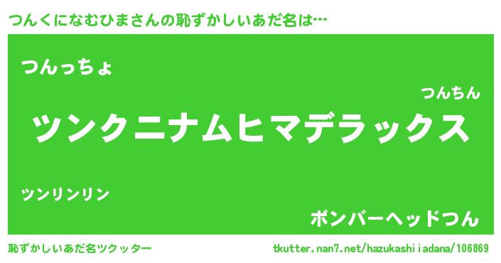 | 女子向けラノベタイトル風あだ名 | 『つんくになむひまなんてお断りですっ。』 |