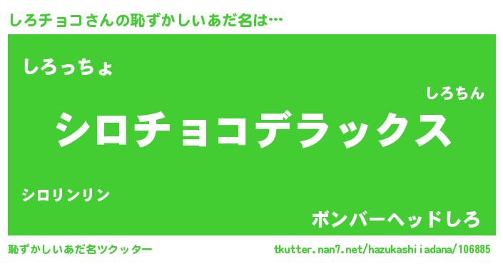 | 意味不明あだ名 | 『自称しろチョコ』『永久保存しろチョコ』 |