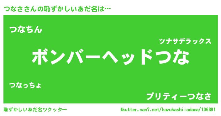 | ヘコむあだ名 | 『つなさ(小並感)』『つなにー』 |