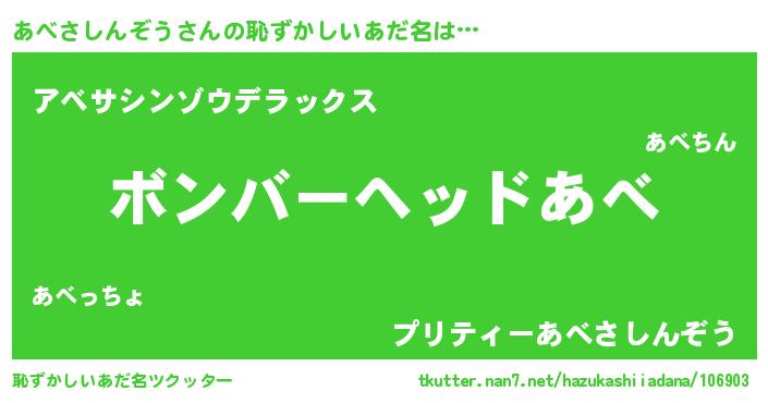 | ヘコむあだ名 | 『あべにー』『あべさしんぞう(震え声)』 |