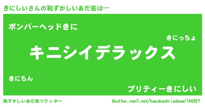 | ヒーロー風カッコイイあだ名 | 『サイバー戦士キニシイ』『仮面キニダー』 |