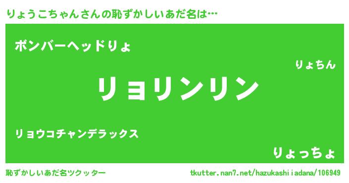 | ヘコむあだ名 | 『りょお』『なまこ酢』『りょにゅー』 |
