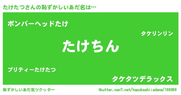 | ヘコむあだ名 | 『たけたつ(爆)』『たけを』『牛乳』 |