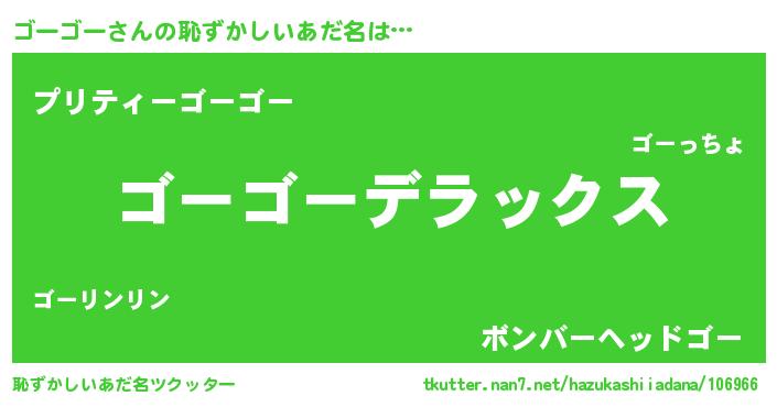 | ヒーロー風カッコイイあだ名 | 『究極戦士ゴーゴー』『仮面ゴーダー』 |