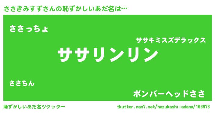 | 欧米人風あだ名 | 『ウサインささきみすず』 |