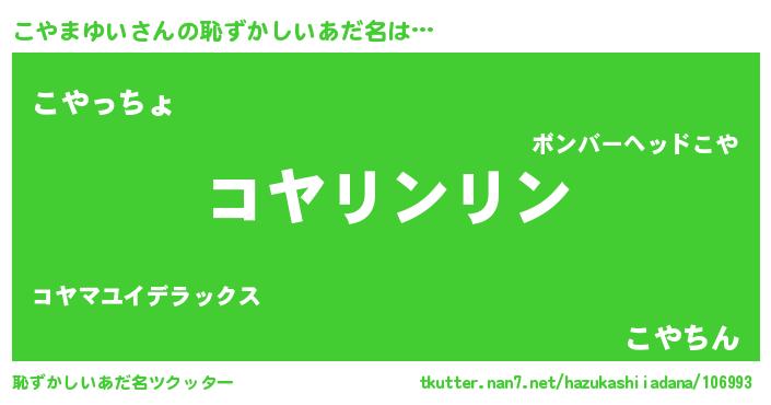 | 胡散臭い通販商品みたいなあだ名 | 『信頼と実績のサプリメント…その名も「こやまゆい」』 |