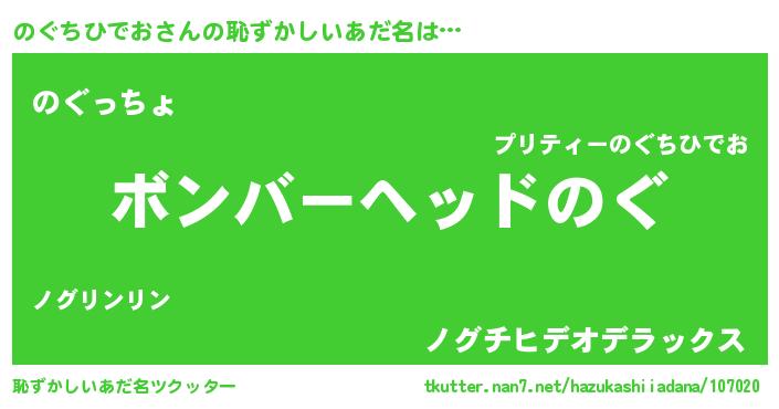 | 男性向けラノベタイトル風あだ名 | 『ノーゲーム・ノーノグチヒデオ』 |