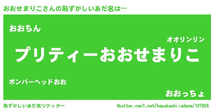 | 胡散臭い通販商品みたいなあだ名 | 『億万長者になれるブレスレット…その名も「おおせまりこ」』 |