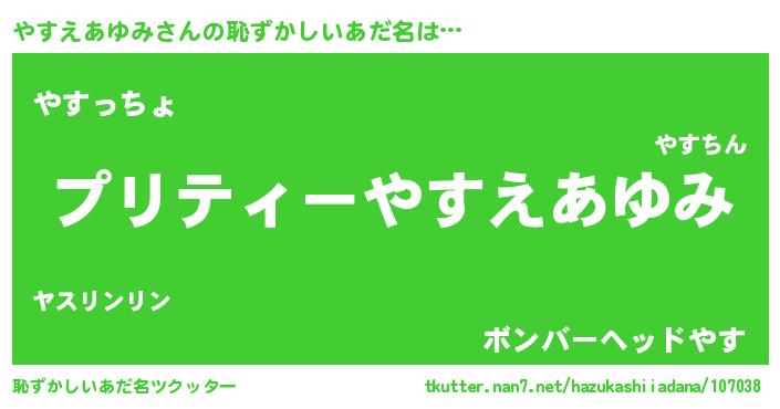 | 女子向けラノベタイトル風あだ名 | 『(仮)やすえあゆみのやんごとなき事情』 |