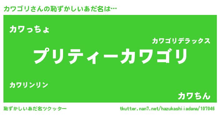 | 意味不明あだ名 | 『住所不定無職カワゴリ(4歳)』 |