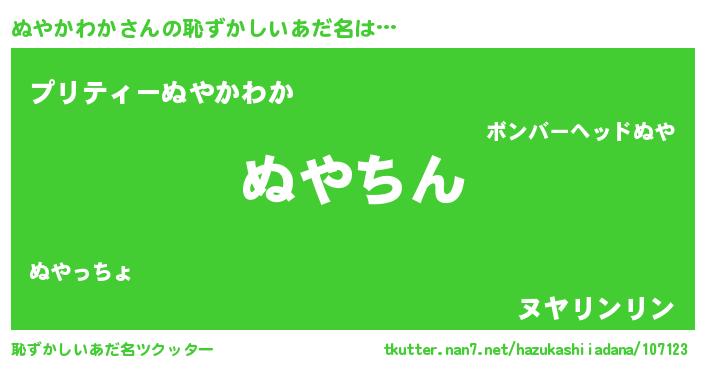 | ヘコむあだ名 | 『ぬやかわか(遠い目)』『ぬやっふぃ~』 |