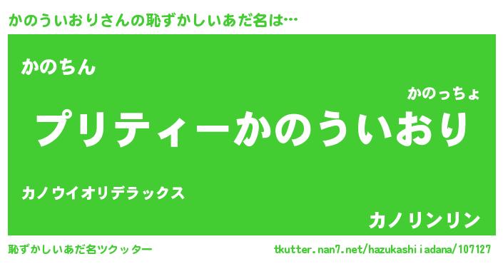 | 可愛いあだ名 | 『かんかん』『かのういおりママ』 |