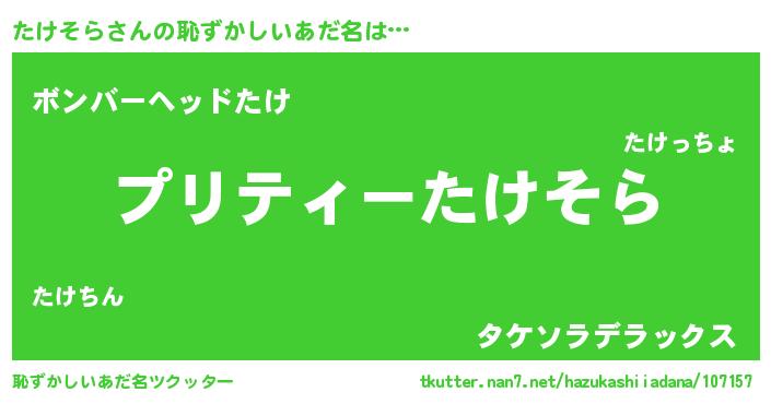 | ヘコむあだ名 | 『たけにゅー』『なまこ酢』 |