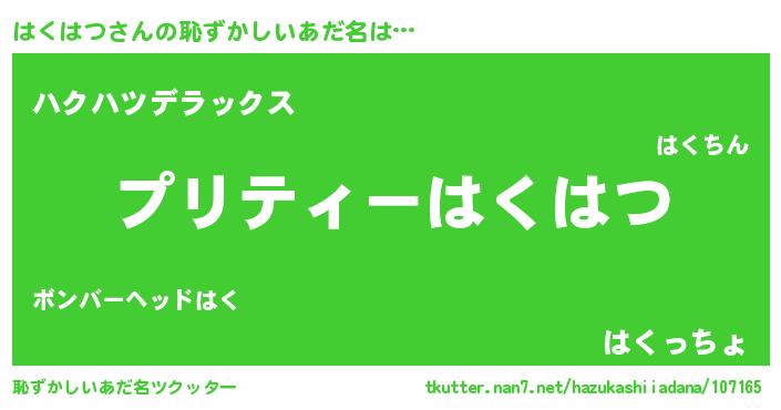 | ヘコむあだ名 | 『はくもー』『牛乳』『はくはつ(笑)』 |