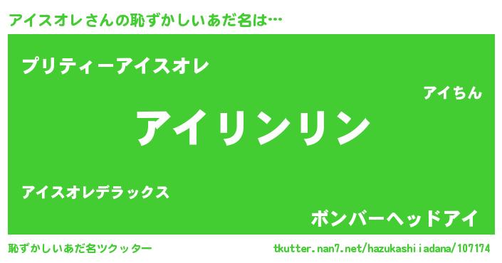 | 男性向けラノベタイトル風あだ名 | 『アイスオレの嫁は女の子じゃないと思った?』 |