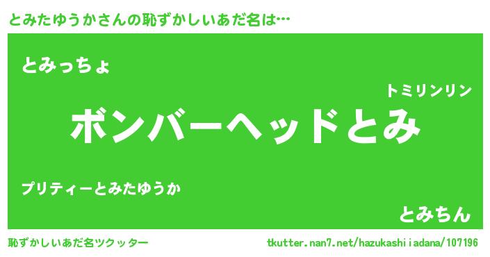 | 可愛いあだ名 | 『とみぷりん』『とみちゅっちゅ』 |