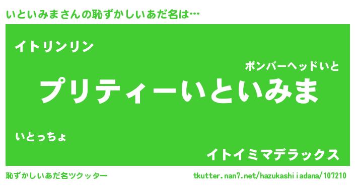 | 意味不明あだ名 | 『ペロリンいといみま』『自称いといみま』 |