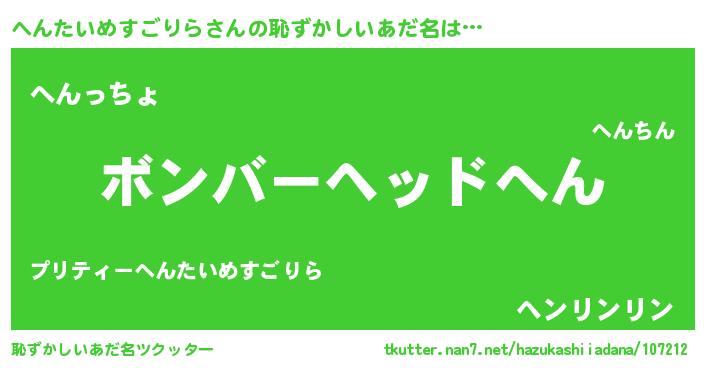 | 欧米人風あだ名 | 『ダニエルへんたいめすごりら』 |