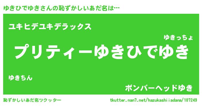 | ヒーロー風カッコイイあだ名 | 『仮面ユキダー』『スーパーユキヒデユキ』 |