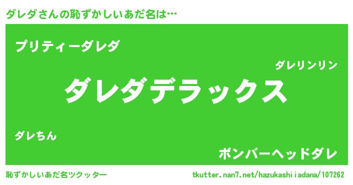 | ヒーロー風カッコイイあだ名 | 『仮面ダレダー』『究極戦士ダレダ』 |