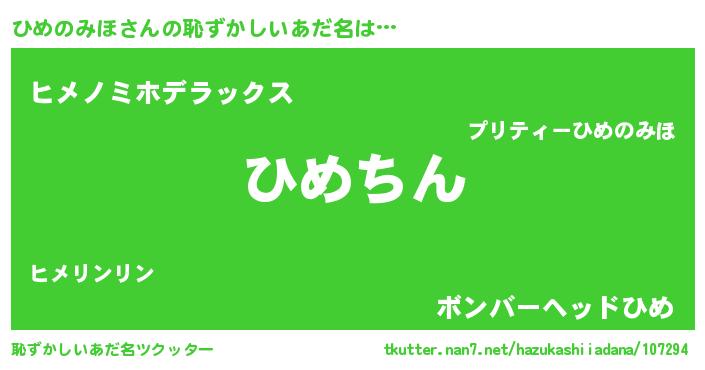 | ヘコむあだ名 | 『ひめのみほ(爆)』『ひめっふぃ~』 |