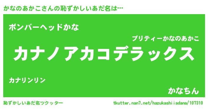 | 男性向けラノベタイトル風あだ名 | 『Re:かなのあかこから始める異世界生活』 |