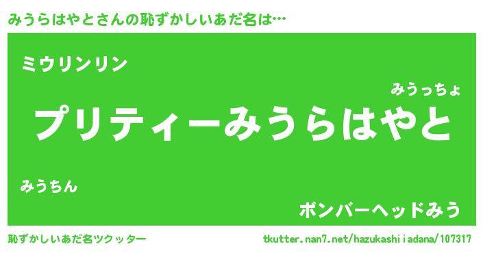 | ヘコむあだ名 | 『みうにー』『みうっちょ』『つくし』 |