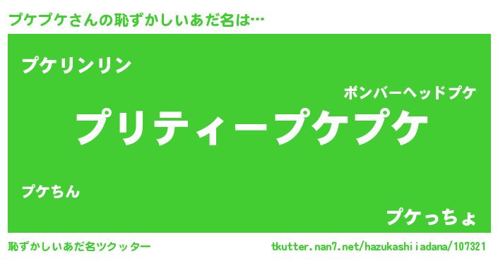 | ヘコむあだ名 | 『プケにー』『プケお』『酢こんぶ』 |