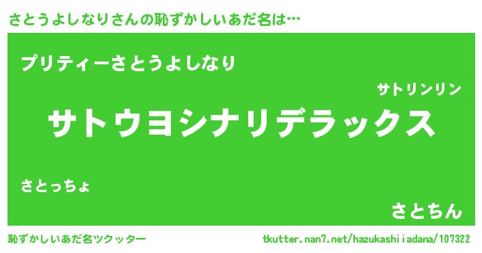 | 男性向けラノベタイトル風あだ名 | 『Re:さとうよしなりから始める異世界生活』 |