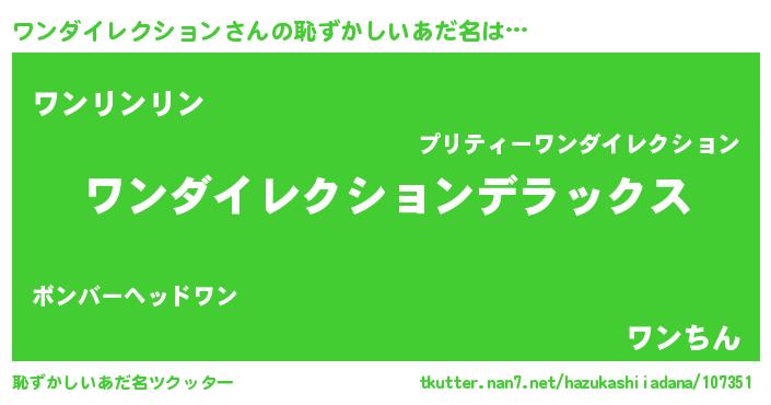 | 男性向けラノベタイトル風あだ名 | 『この素晴らしい世界にワンダイレクションを!』 |