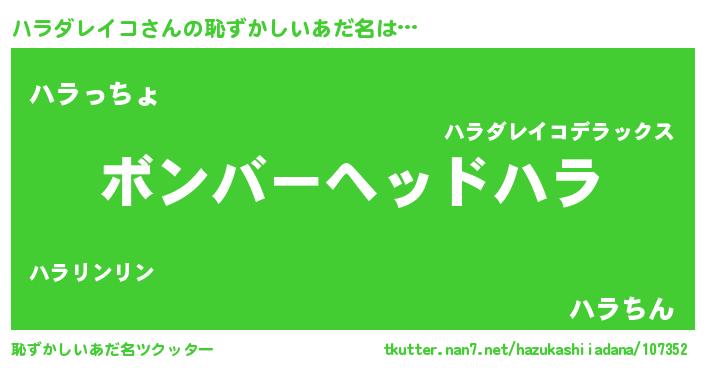 | 欧米人風あだ名 | 『ダニエルハラダレイコ』 |