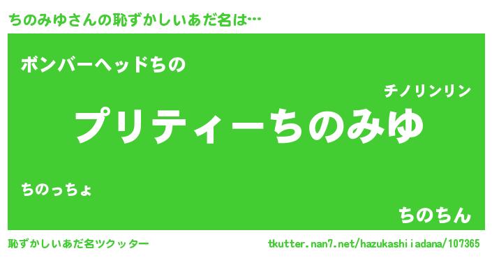 | ヘコむあだ名 | 『ちのふぇ~』『ちのみゆ(爆)』 |