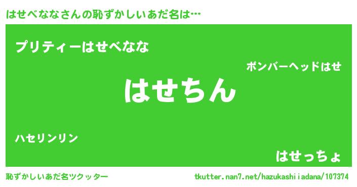 | 意味不明あだ名 | 『永久保存はせべなな』 |