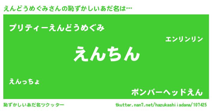 | 意味不明あだ名 | 『永久保存えんどうめぐみ』 |