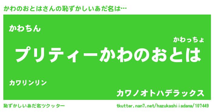 | ヘコむあだ名 | 『かわにー』『かわのおとは(笑)』 |