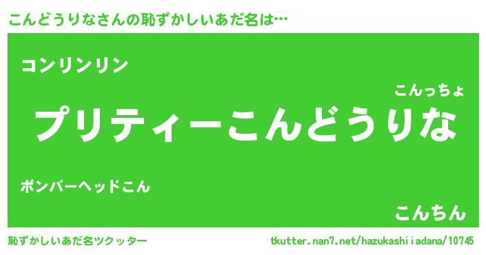 | ヒーロー風カッコイイあだ名 | 『スーパーコンドウリナ』『銀牙騎士コン』 |