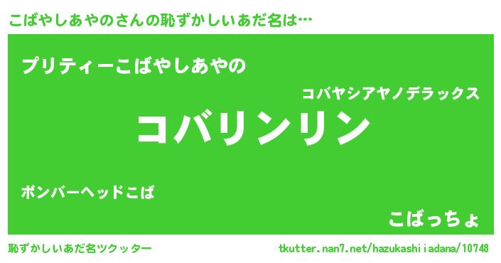 | 女子向けラノベタイトル風あだ名 | 『こばやしあやの様がみてる』 |