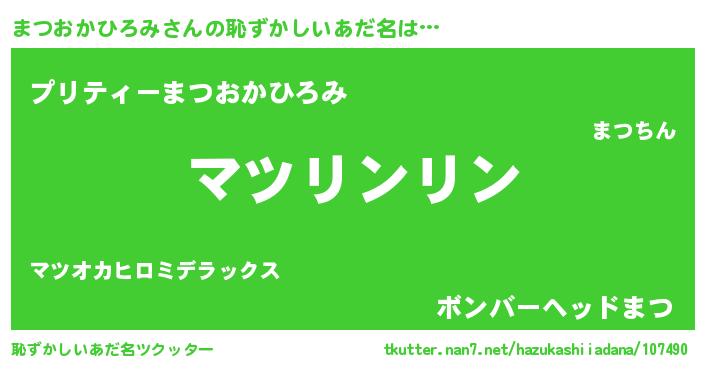 | ポケモン風あだ名 | 『マツキング』『ヒマツオカヒロミ』 |