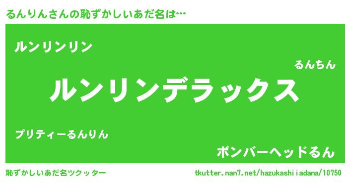 | ヘコむあだ名 | 『るんお』『るんりん(苦笑)』 |