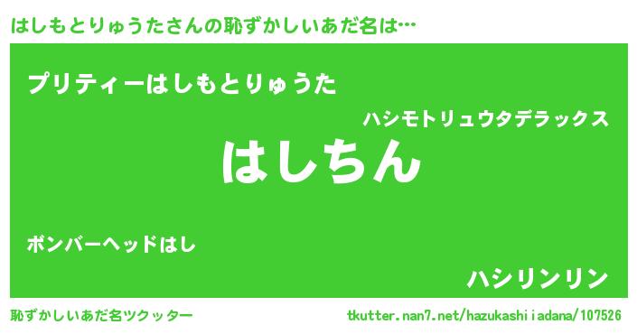 | ヘコむあだ名 | 『はしもとりゅうた(震え声)』『はしもー』 |