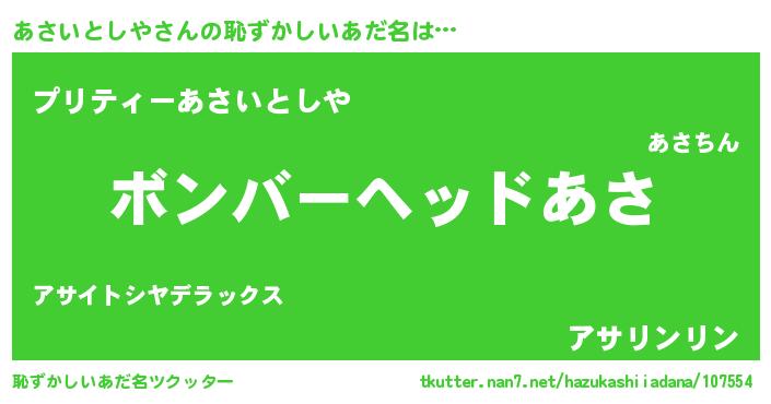 | 男性向けラノベタイトル風あだ名 | 『アサイトシヤスレイヤー』 |