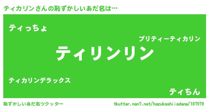 | 意味不明あだ名 | 『とにかく怪しいティカリン』 |