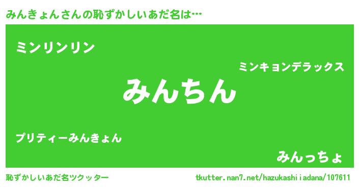 | 意味不明あだ名 | 『永久保存みんきょん』『自称みんきょん』 |