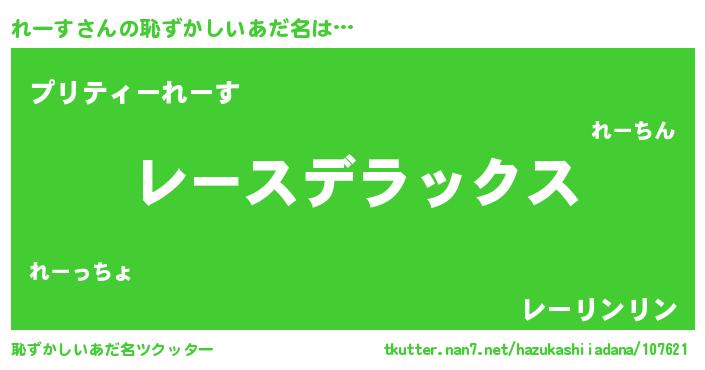 | 意味不明あだ名 | 『自称れーす』『ペロリンれーす』 |