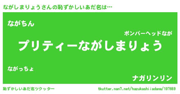 | ヘコむあだ名 | 『ながにゅー』『ながしまりょう(笑)』 |