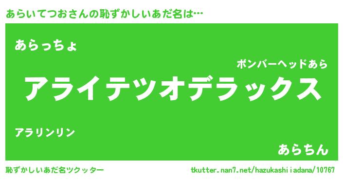 | 意味不明あだ名 | 『自称あらいてつお』 |