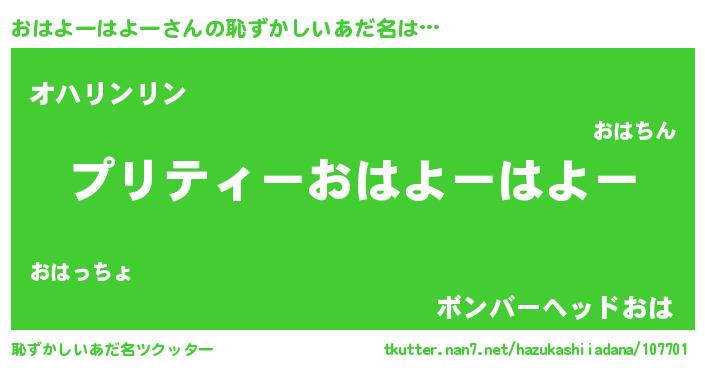 | 意味不明あだ名 | 『ニラ科おはよーはよー属』 |