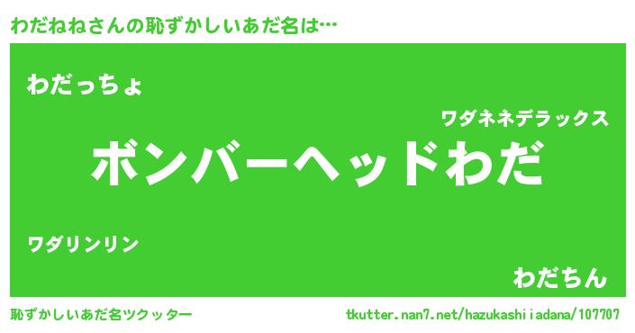 | 欧米人風あだ名 | 『ダレノガレわだねね』 |