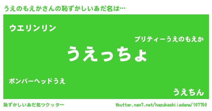 | ポケモン風あだ名 | 『ウエノダネ』『ヒウエノモエカ』 |